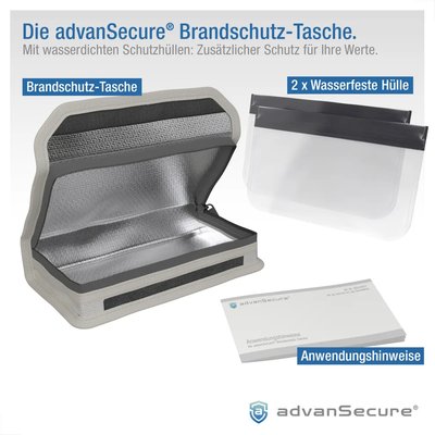 Sinvoller Schutz gegen Wasser: Die Tasche gewährt Schutz gegen Strahlwasser, die beiligenden wasserdichten Schutzbeutel schützen den Inhalt beim vollständigen Untertauchen. So schützen Sie Ihre Werte gegegen Löschwasser, Hochwasser oder bei Rohrbrüchen.