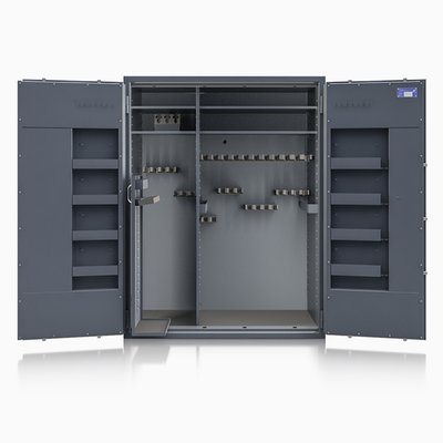 Der St Gallen Waffenschrankserie entspricht Widerstandsgrad 1 gemäß EN 1143-1 (ECB-S) und übertrifft damit die gesetzlichen Vorgaben. Er bietet viel Platz für Langwaffen, Kurzwaffen und Zubehör. Alle Modelle sind mit LED-Beleuchtungen ausgestattet