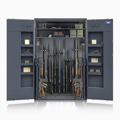 Der St Gallen Waffenschrankserie entspricht Widerstandsgrad 1 gemäß EN 1143-1 (ECB-S) und übertrifft damit die gesetzlichen Vorgaben. Er bietet viel Platz für Langwaffen, Kurzwaffen und Zubehör. Alle Modelle sind mit LED-Beleuchtungen ausgestattet
