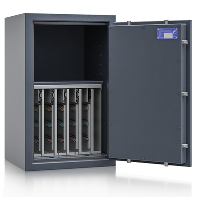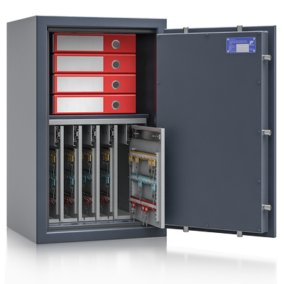 Der Osprey Key 5-B verfügt über insgesamt 280 Schlüsselhaken auf 5 Auszugstablaren und bietet mit Grad 1 sehr guten Schutz und hohe Versicherungswerte. Ein zusätzlicher Fachboden ermöglicht zudem die bequeme Lagerung von Dokumenten und Wertgegenständen.